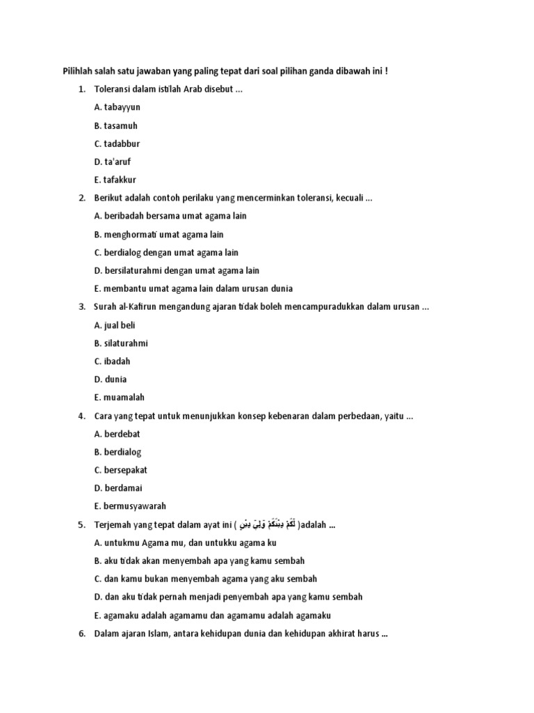 Soal Agama Islam 6c Religious Studies Quiz Quizizz from quizizz.com We did not find results for: Maybe you would like to learn more about one of these? Check spelling or type a new query. Surat alkafirun mengandung ajaran tidak boleh mencampuradukkan dalam urusan.